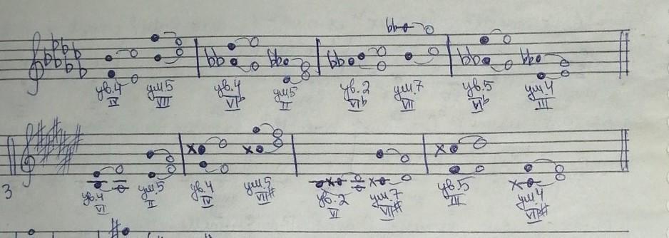 Характерные интервалы Ув2 и Ум7 строятся в гармоническом мажоре на 6 пониженной и 7 ступенях, в гармоническом миноре на 6 и 7 повышенной ступени. Ув5 и ум4 строятся в гармоническом мажоре на 3 и 6 пониженной ступенях, в гармоническом миноре на 3 и 7 повышенной ступенях