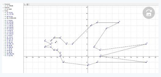 (-3;-1), (-3;5), (-2;6), (-4;7), (-2;8), (-1;9), (1;9), (2;8), (2;6), (3;5), (3;-1), (1;-4), (3;-10), (0;-7), (-3;-10), (-1;-4).