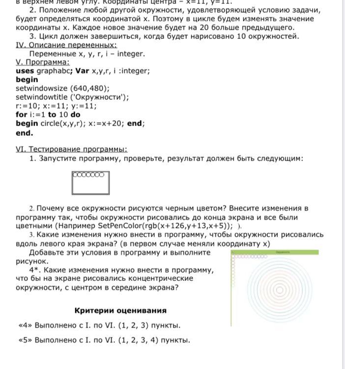 4) x: = 320 ; y: = 240 ; r:=r+20; DrawCircle(x,y,r);