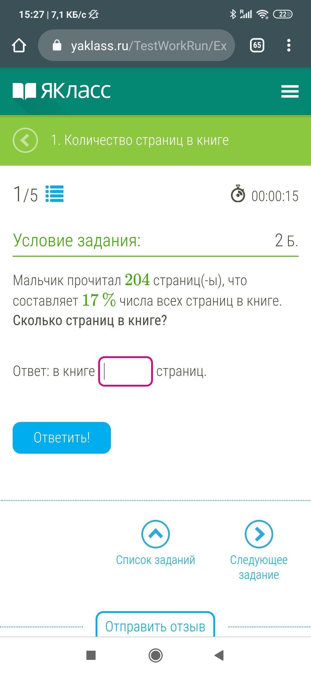 Пусть х=100% всей книги, отсюда следует, что х=(204÷17)×100=1200(с)