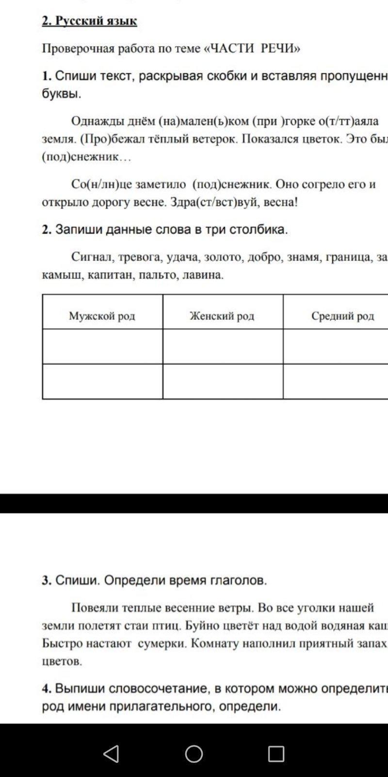 Ответ:1)Однажды днём на маленьком пригорке оттаяла земля. Пробежал тёплый ветерок. Показался цветок. Это был подснежник.