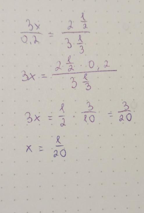 Сначала находим 3х через пропорцию, а затем выражаем х