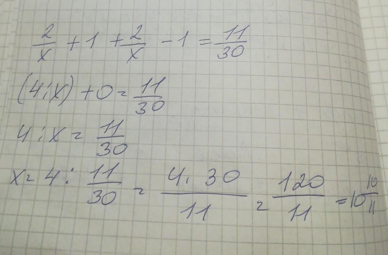 2/x+1+2/x-1=11/30 складываем 2/х,+1-(-1) будет 0