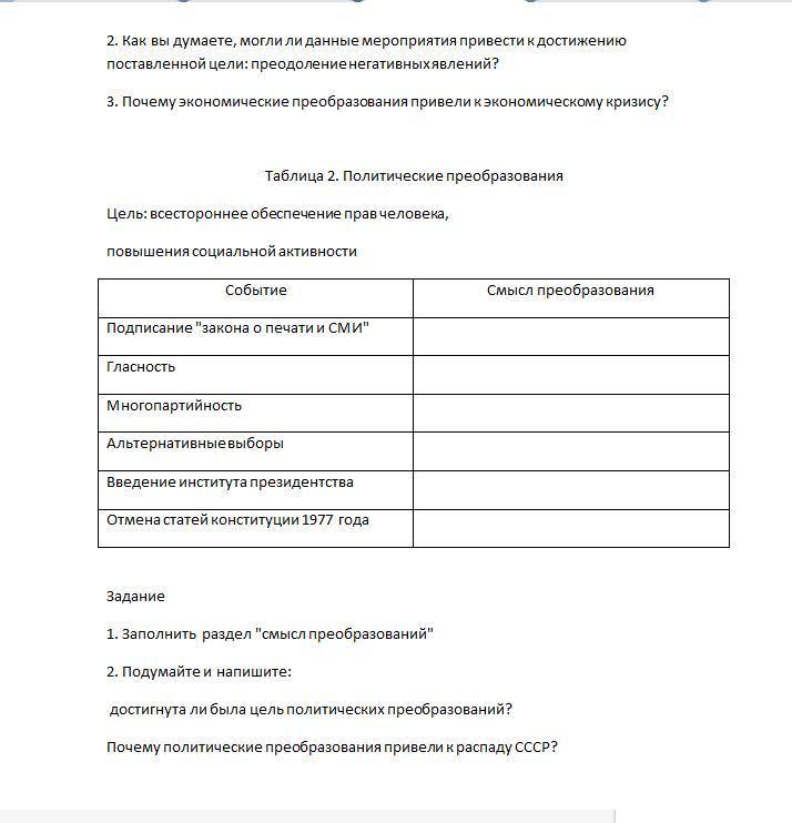 Вывод: Политика гласности привела к дальнейшим демократическим преобразованиям и уменьшением роли КПСС в жизни страны.