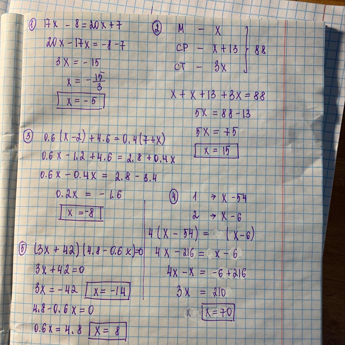 5. Решите уравнение (3х+42)(4,8-0,6х)=0.