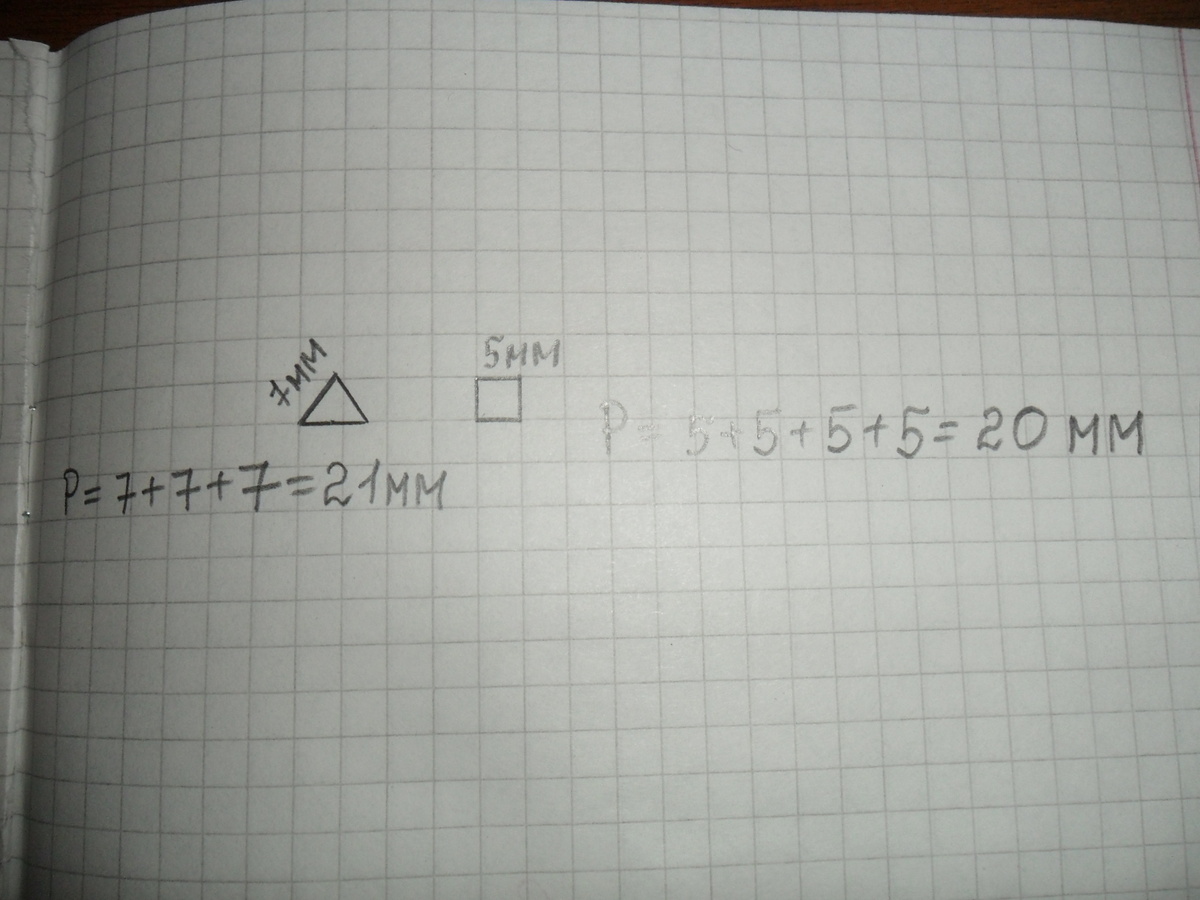 1)21:3=7 мм-одна сторона треугольника. 2)7-2=5 мм-одна сторона квадрата. В файле-всё подробно.