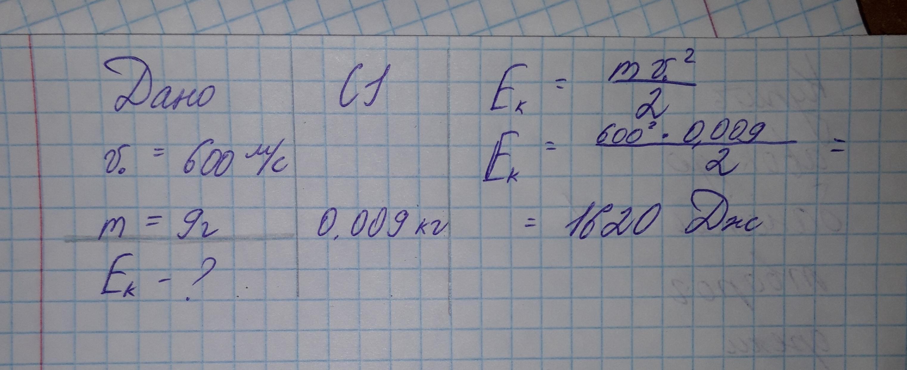 Определите какой кинетической энергией будет обладать пуля вылетевшая из ружья.скорость ее при вылете из ружья равна 600 м/с а масса-9г