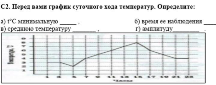 смотри,спрашивают мин температуру у нас она 2 градуса,а два градуса на графике ровно в 5 часов