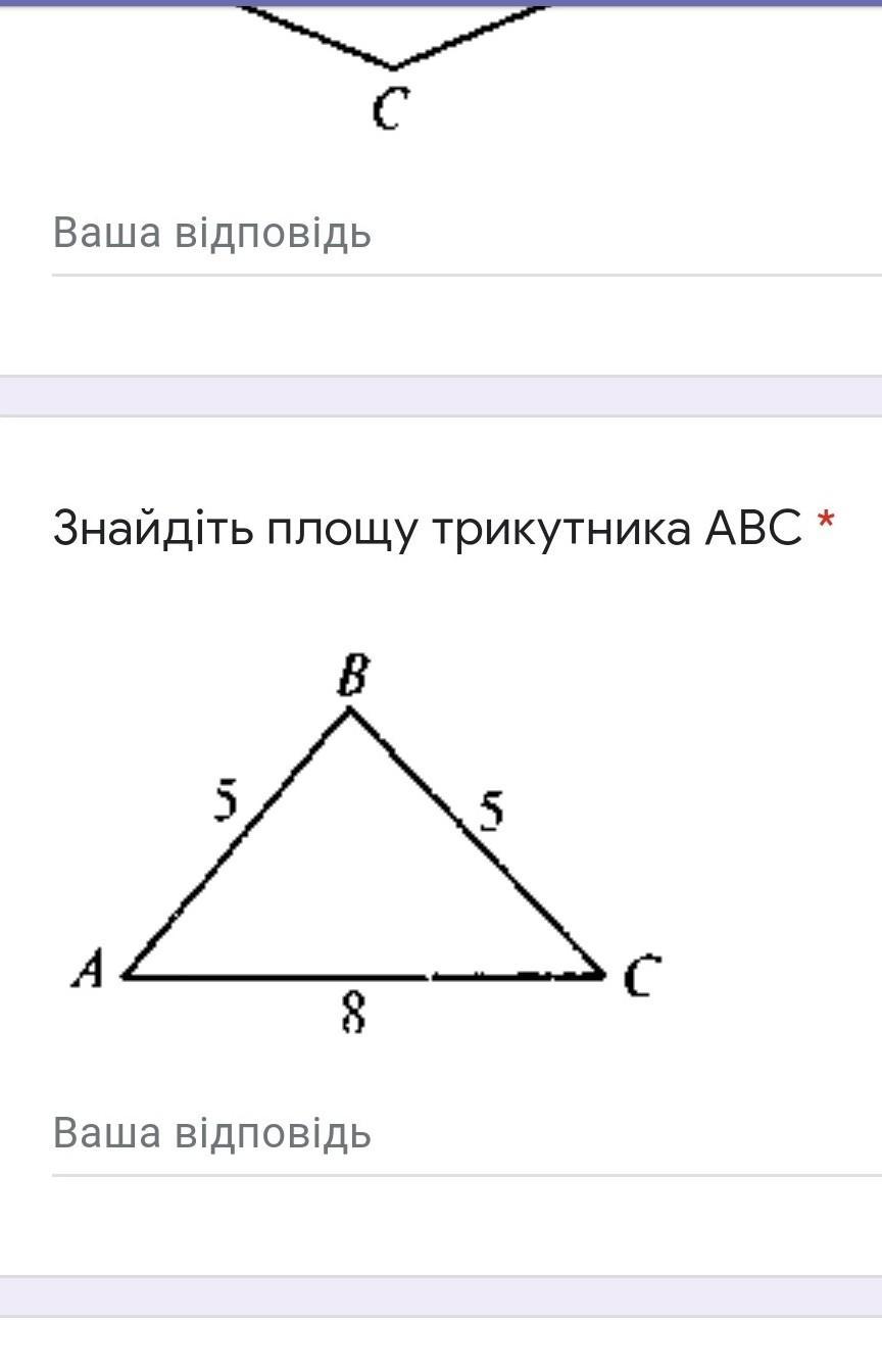 Проведём высоту (так как треугольник равнобедренный, то она будет равна медиане), по Пифагоровой тройке она будет равна 3. Найдём площадь по формуле: S=a*h(a)/2=8*3/2=12