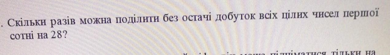 скільки разів можна поділити без остачи добуток всіх цілих чисел першої сотні на 28
