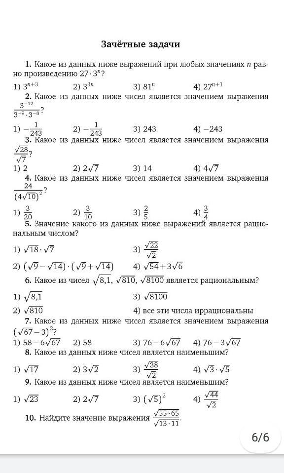 Решение на фото. При умножении показатели складываются, при делении отнимаются. В 8 и 9 задании заносим все под корень чтоб было удобно. Так же если в числителе и знаменателе корни одинаковой степени, можно записывать всю дробь под общим корнем и сокращать где надо.