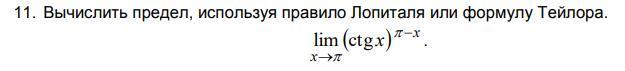 lim {x стремится к pi} (ctgx) {в степени} (pi-x)