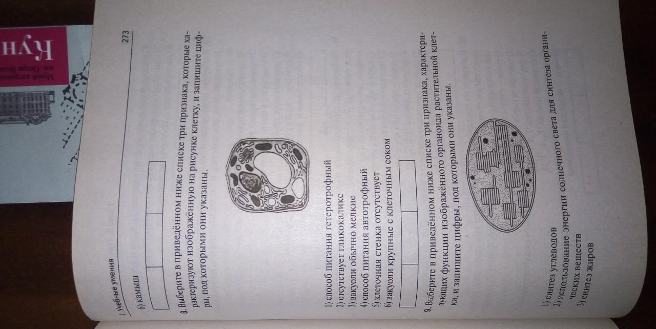 9.Выбирите из приведённого ниже списка три признака которые присущи функции изображённого на картинке органоидной растительной клетки