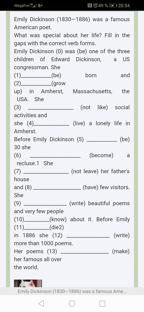 1.was.2.grew.3.didn't like.4.lived.5.was.6.became.7.didn't leave.8.had.9.wrote.10.knew.11.has died.12.wrote.13.is making.