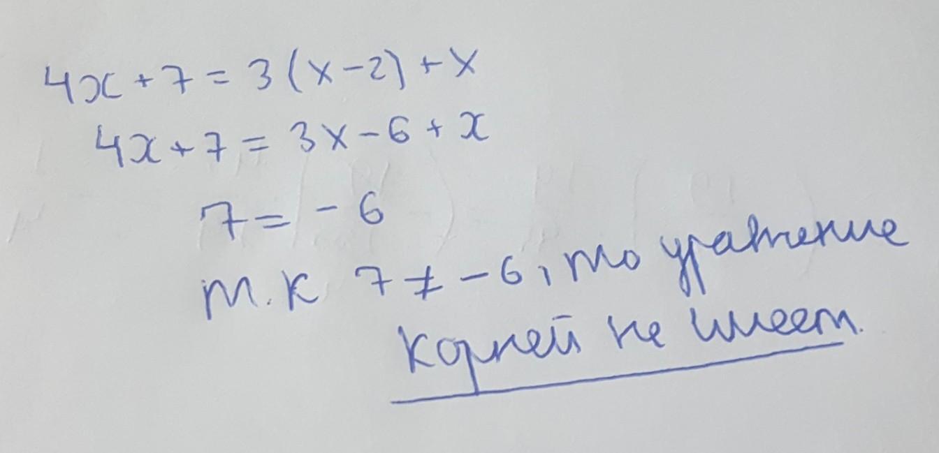 Розв’яжіть рівняння 4х +7 = 3 ( х - 2 ) + х