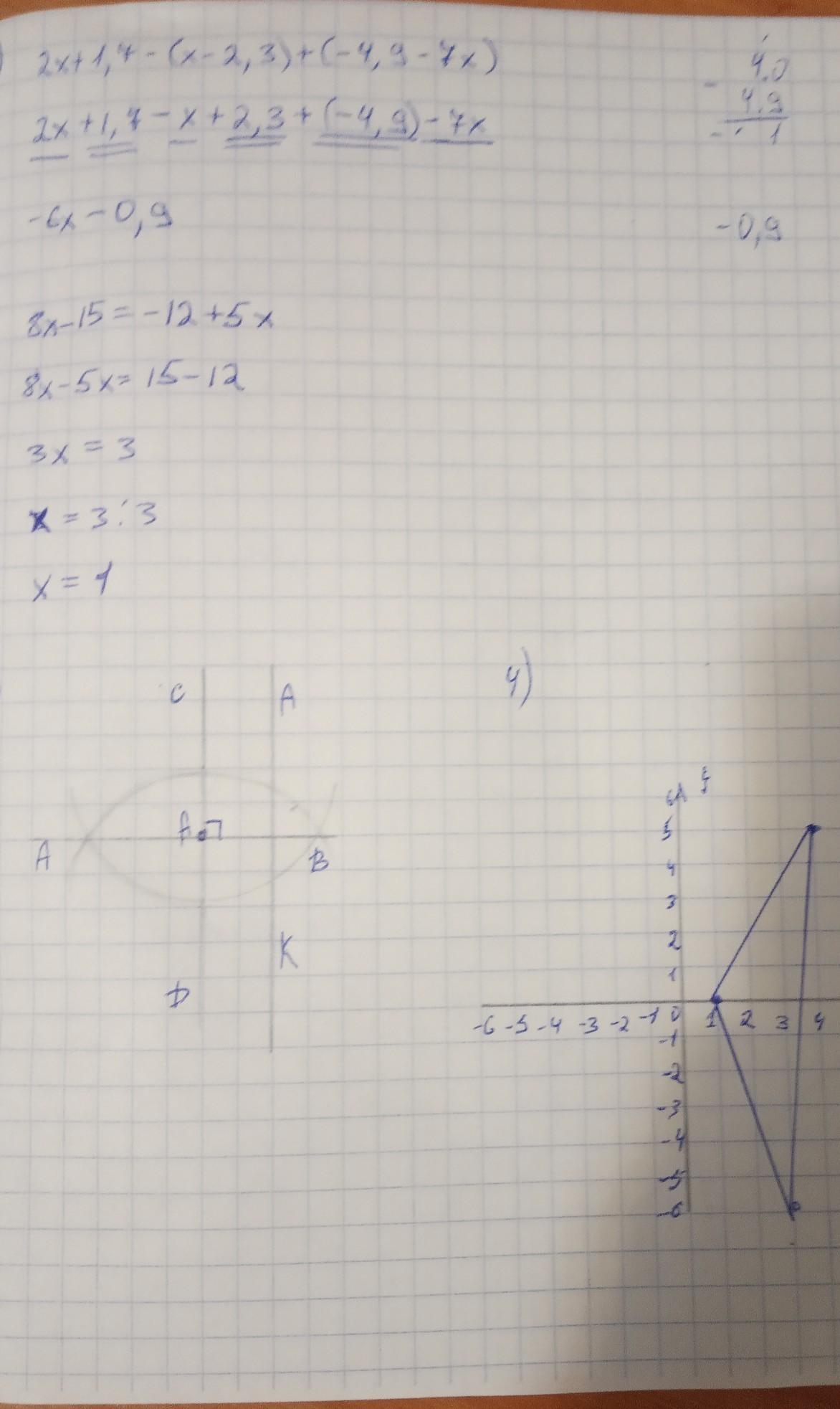 а) 2х+1,7-(х-2,3)+(-4,9-7х)