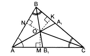 OB- общая=> треугольник ONB= треугольнику OKB- по гипотенузе и острому углу