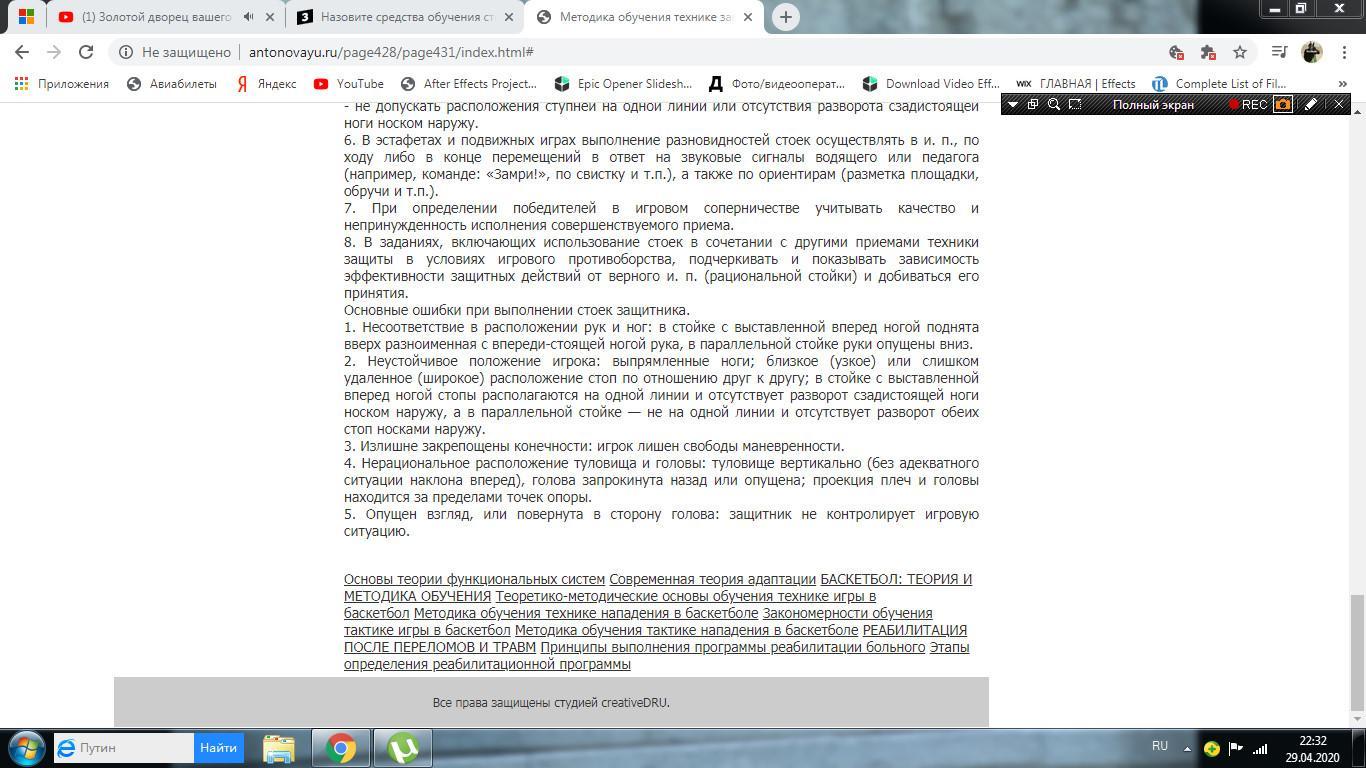 Такая последовательность обучения приемам защиты соответствует содержанию, структурным особенностям и самой логике игры в баскетбол. Она позволяет постепенно подвести занимающихся к эффективному использованию всего приобретенного ими технического арсенала в условиях игрового соревновательного противоборства.