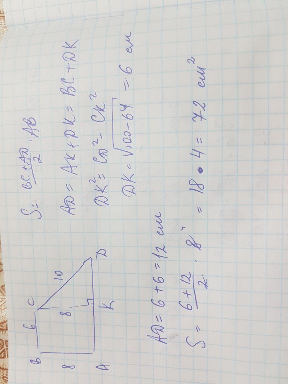 Менее основание прямоугольной трапеции равно 6см. а боковые стороны -