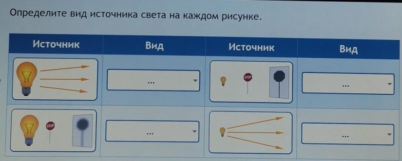 ОПРЕДЕЛИТЕ ВИД ИСТОЧНИКА СВЕТА НА КАЖДОМ РИСУНКЕ.