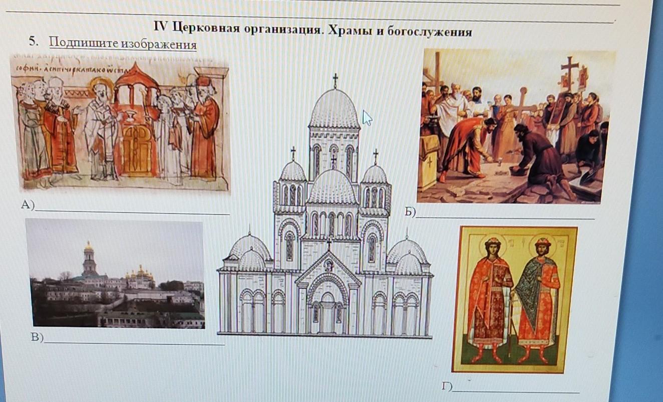 Відповідь:А) слово про закон і благодять Іларіона, церква що посередині то десятинна В)софіївський собор Б Розпяття Ісуса