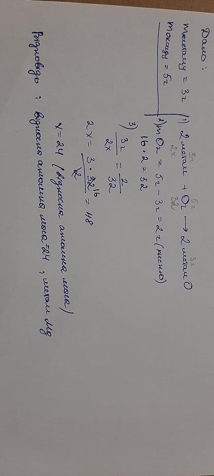 В результаті окиснення 3 г металу одержано 5 г його оксиду. Визначте еквівалентну масу металу, його атомну масу (валентність дорівнює ІІ).