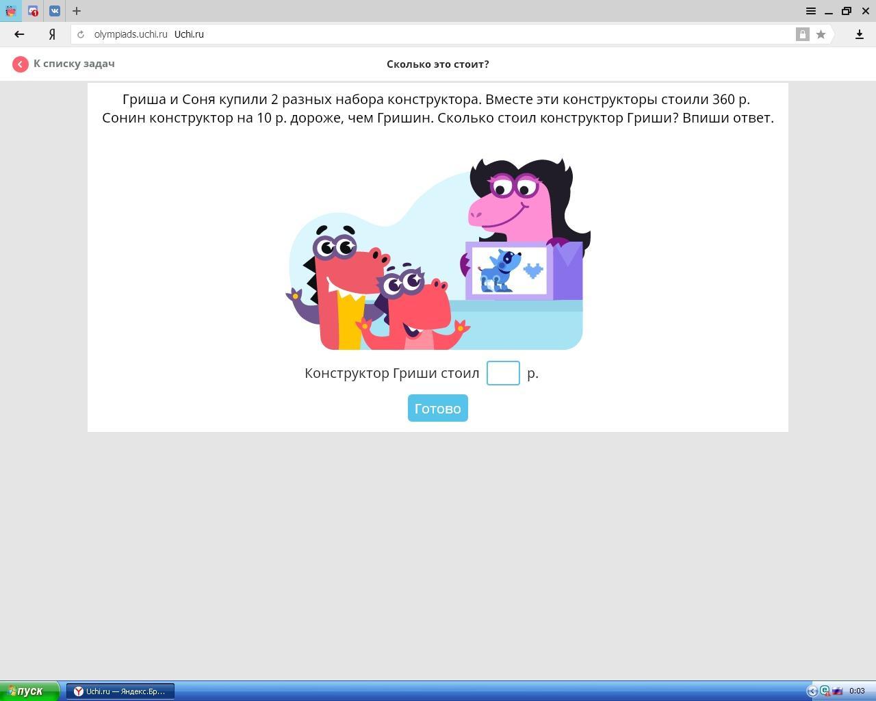 Гришин конструктор- х, Сонин - х+10, общая стоимость - 360 руб. Уравнение: х+х+10=360 2х=360-10 2х=350 х=350:2