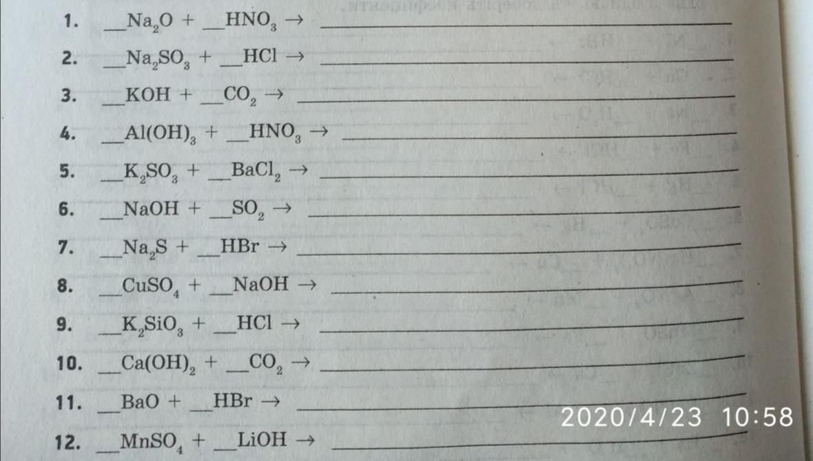 9. K2SiO3 + 2HCl = H2SiO3 + 2KCl