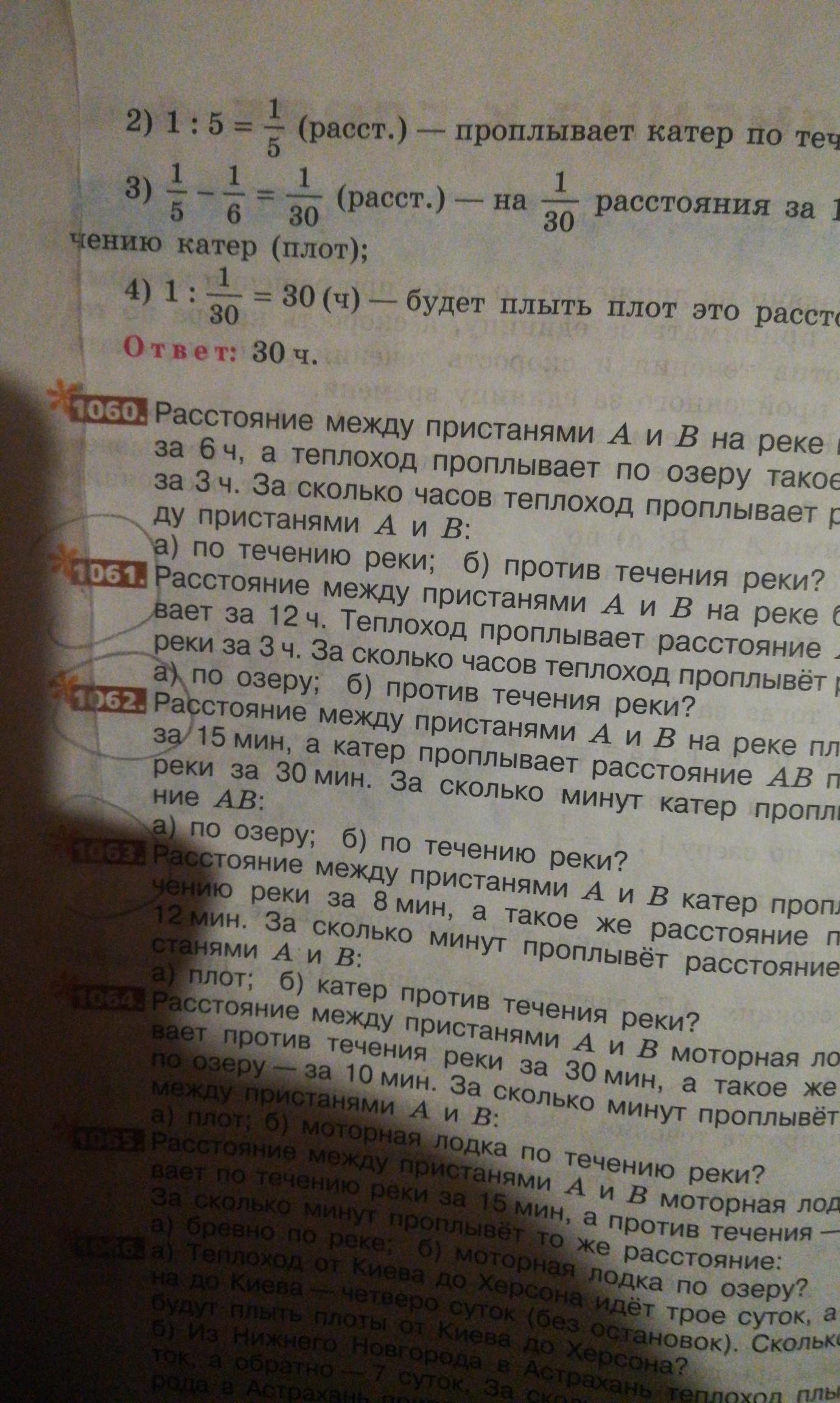 6) 1 : 1/6 = 6 (часов) время в пути теплохода против течения реки