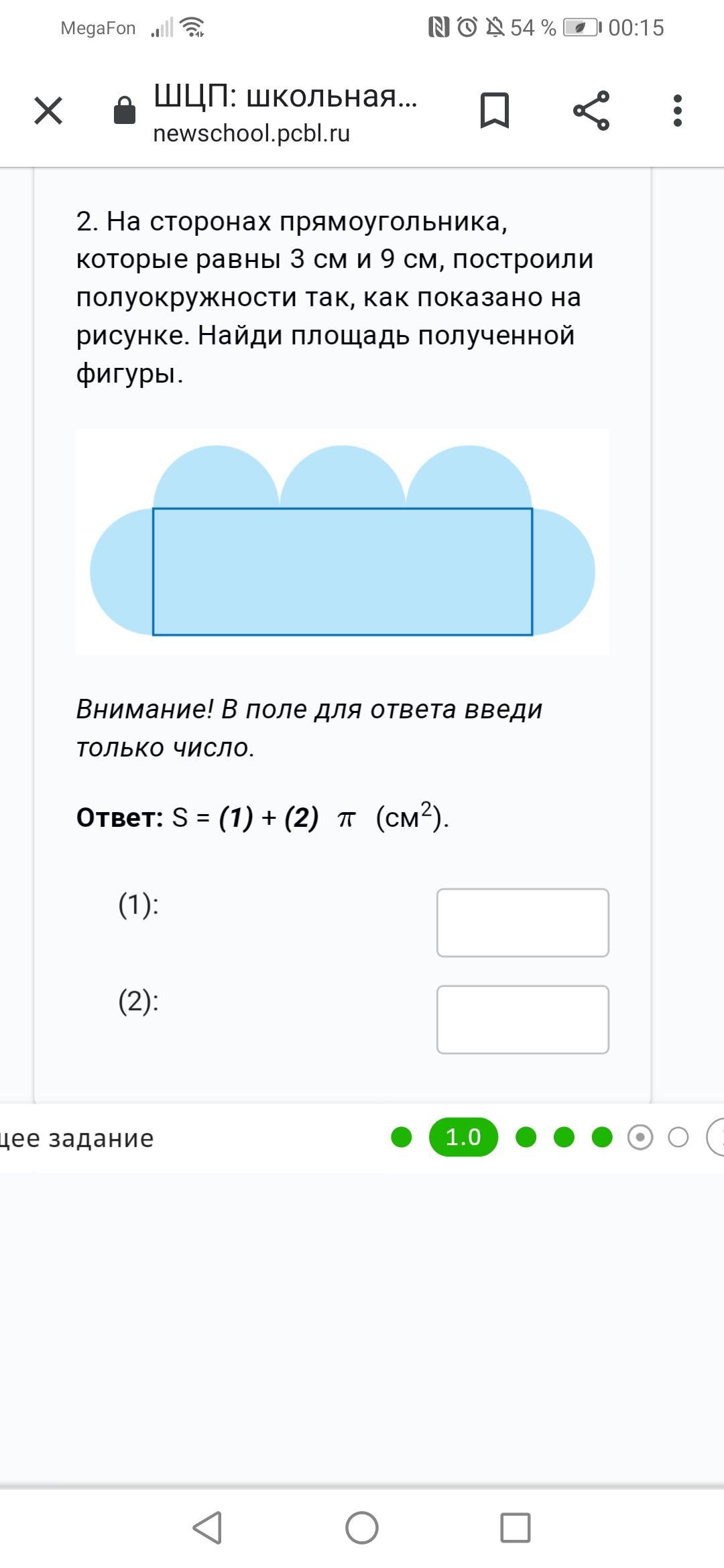 Блин, вчера ночью в потьмах я задание не правильно понял. )) Там полукруги к прямоугольнику прилепили, а я их внутрь вписал. Извини, там формулы те-же, но цифры другие будут.