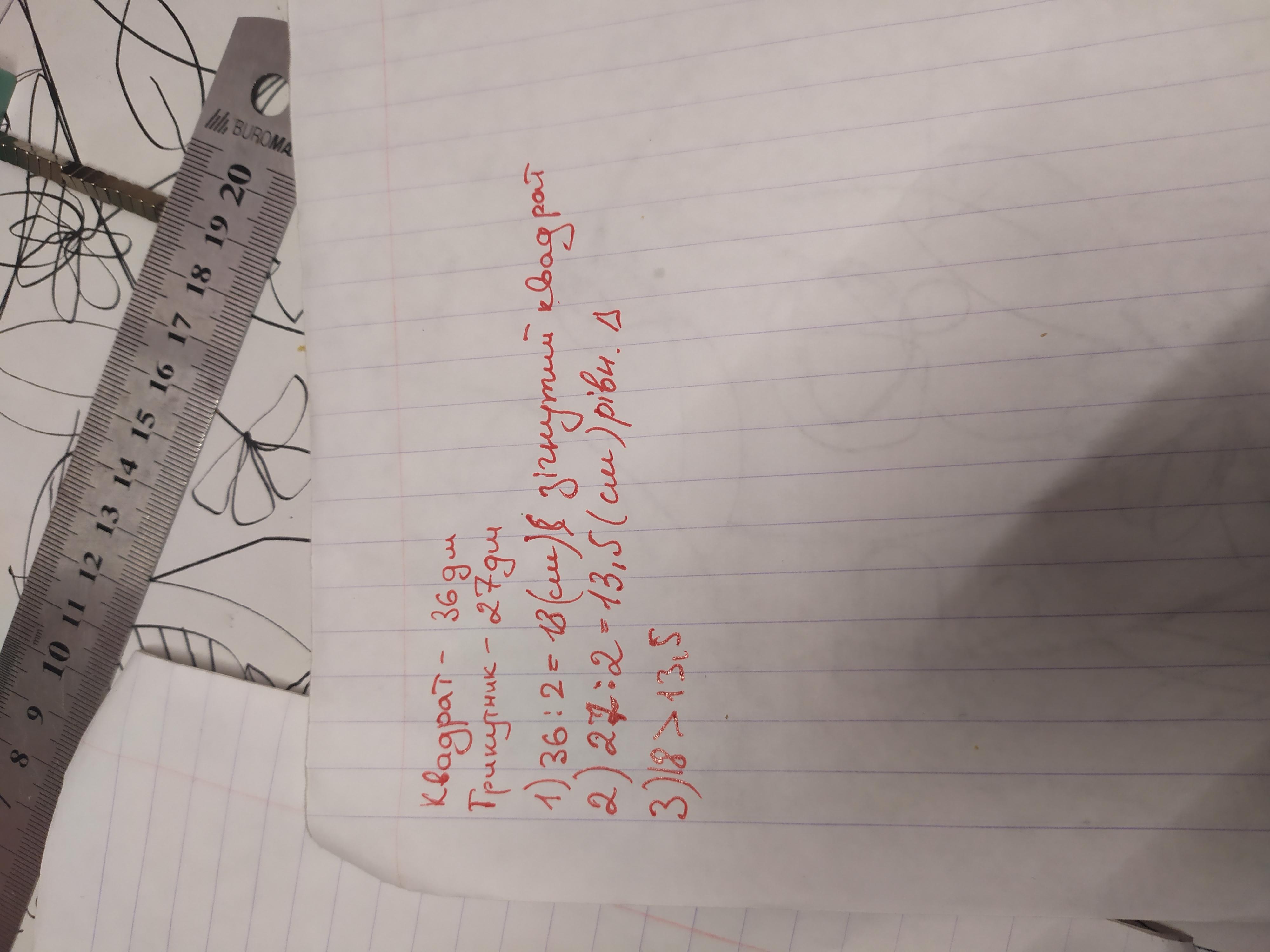 З 36дм зігнули квадрат,а з 27дм дроту-рівносторонній трикутник.Порівняти довжину однієї сторони квадрата і однієї сторони трикутника...если можно пожалуйста составление умовы и решение