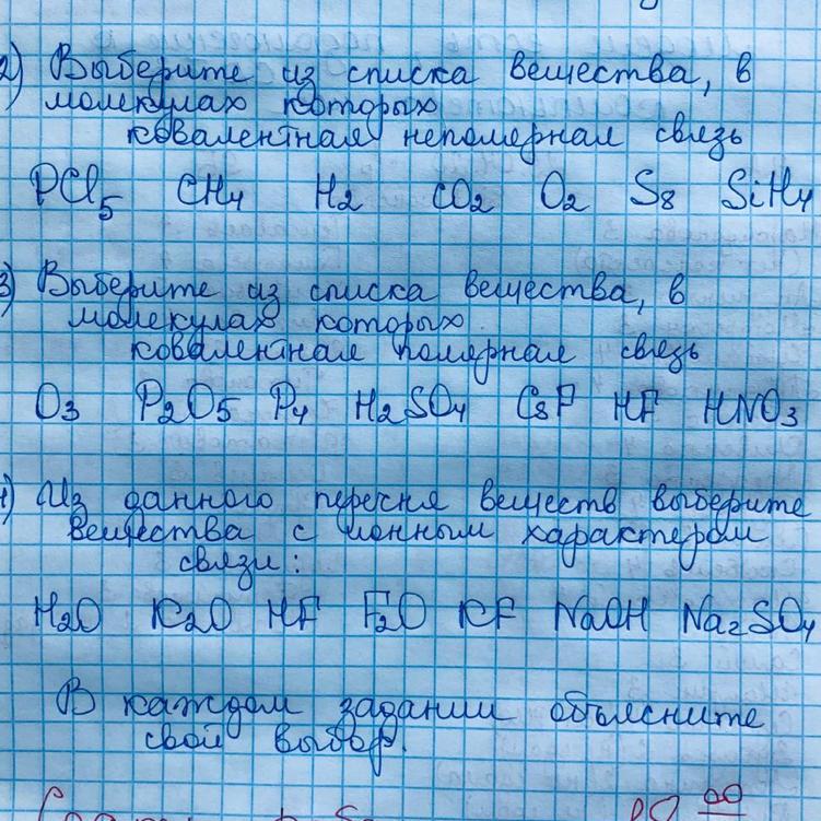 P2O5 - на самом деле молекула выглядит так:P4O10, хоть и простое вещество, но присутствует полюс тк несоответствие валентностей O3, H2SO4 в составе аниона (SO4)2-, Cs3P, в газе HF, HNO3 - в составе аниона NO3-