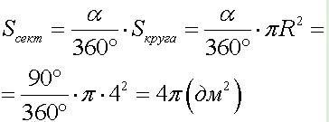 Вычислите площадь кругового сектора, если радиус круга 6 м, а соответствующий