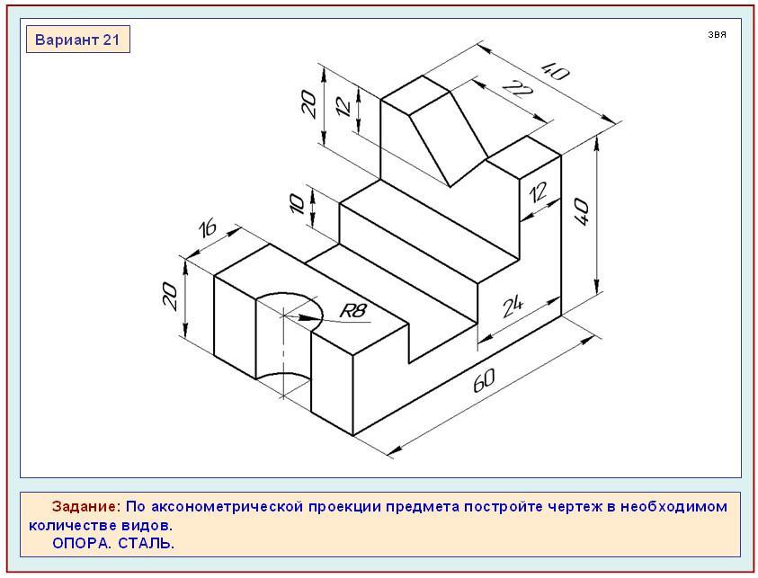 По аксонометрической проекции предмета постройте чертеж в необходимом количестве видов опора сталь