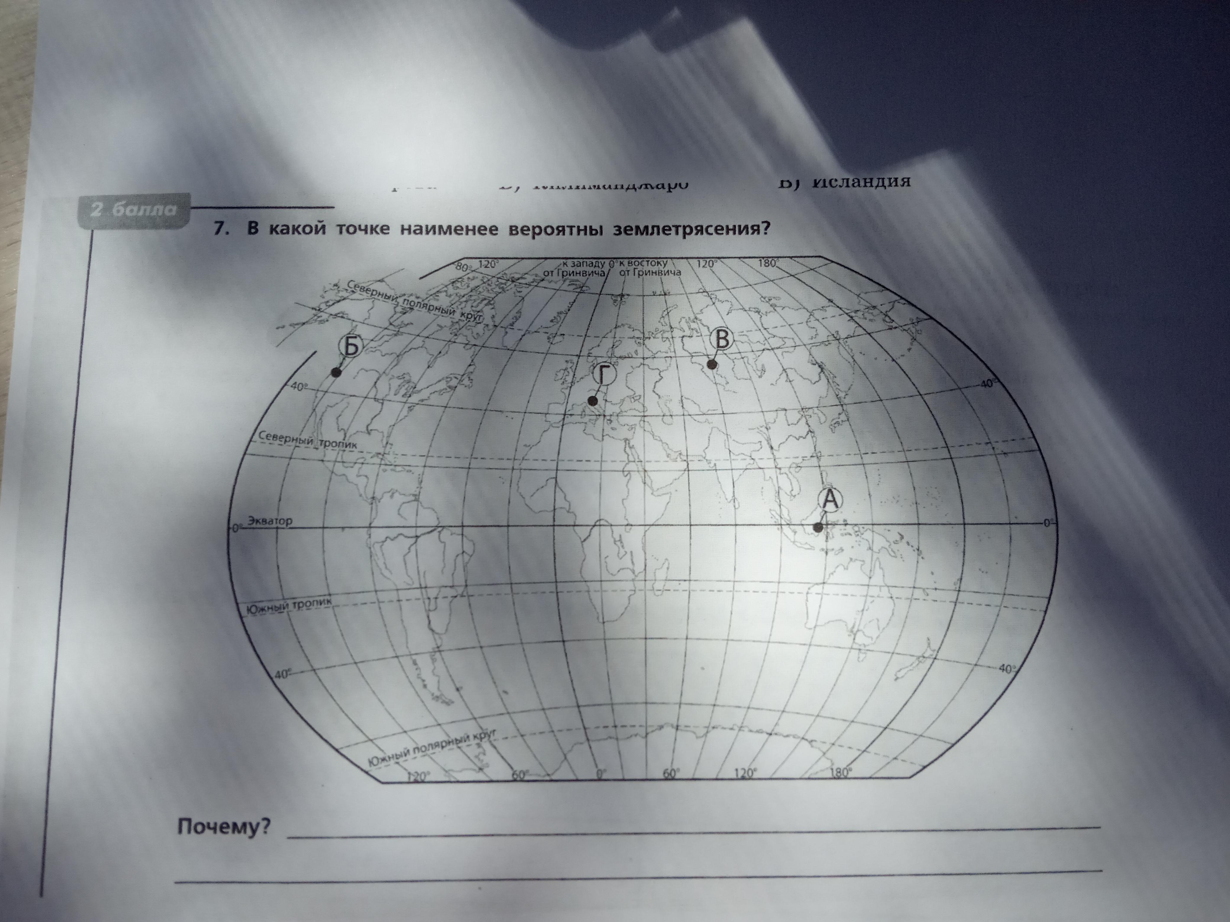 В какой точке наименее вероятны землетрясения? Почему? Я прикрепила фото. Помогите пожалуйста