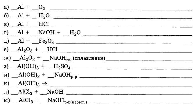 и) Al(OH)3 + NaOH = NaAlO2 + 2 H2O