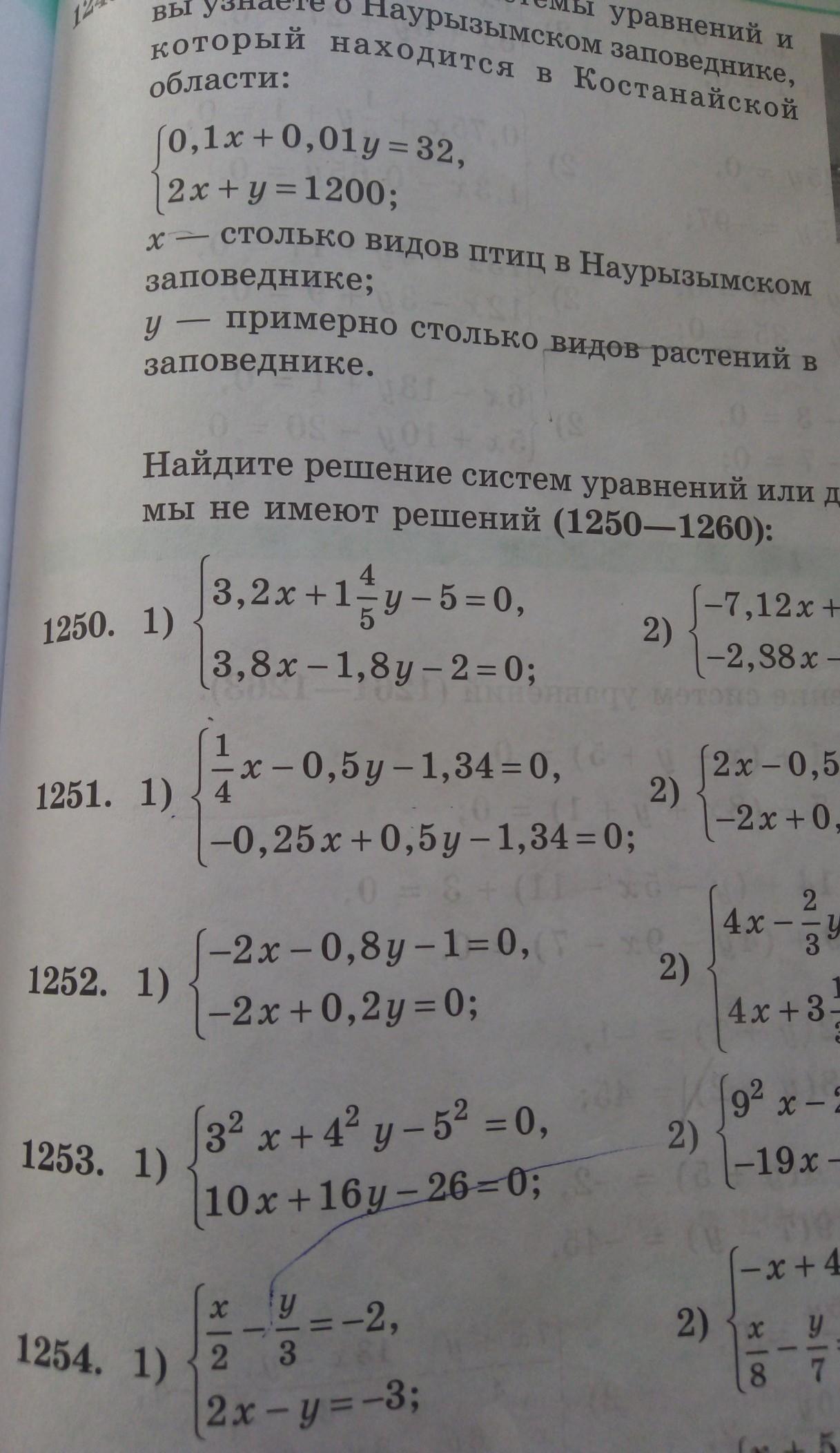 Найдите решение системы уравнений или Докажите что система не имеет решений. Номер 1250 только первый пж быстрее! Только 1.