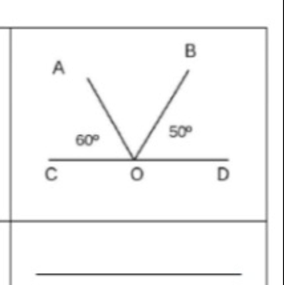 ∠AOB= ∠COD-(∠AOC+∠BOD)= 180°- (60°+50°)=180°-110°=70°
