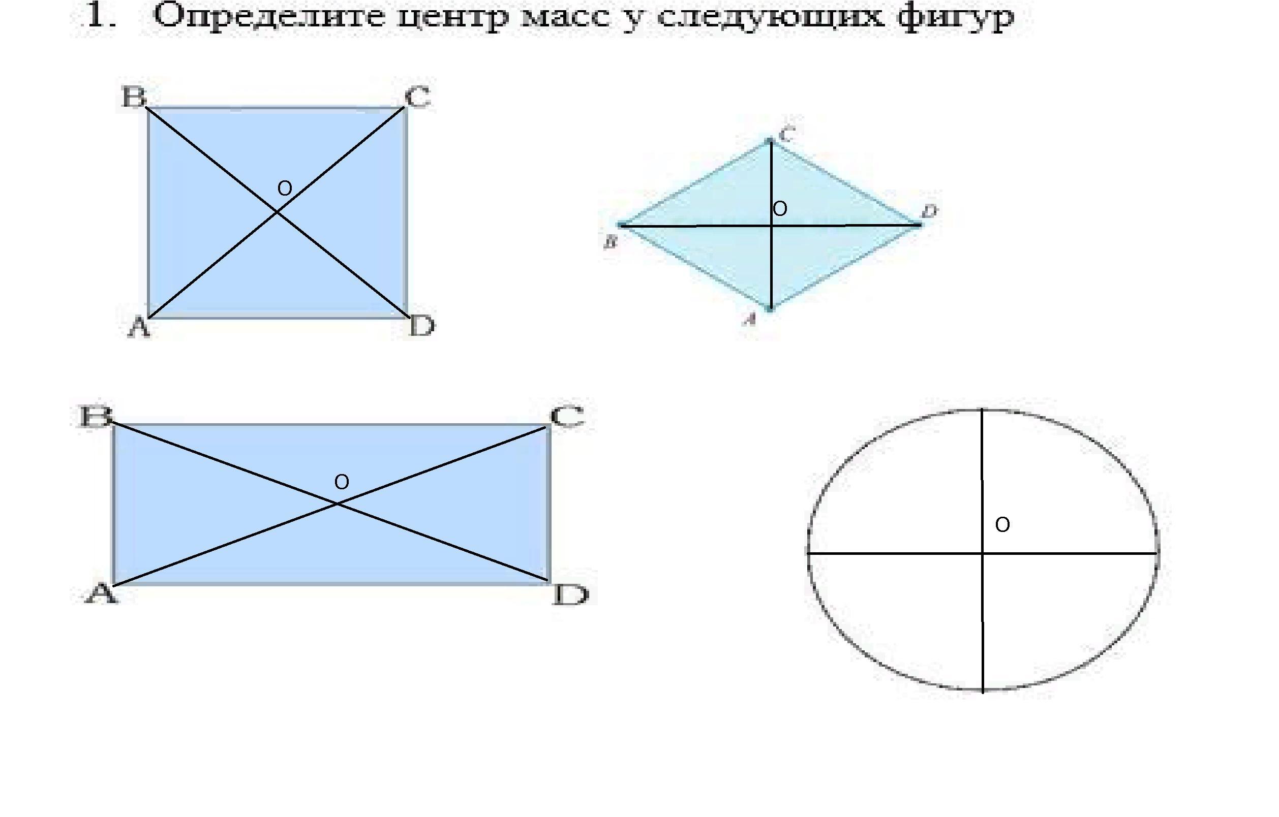 Центр тяжести О в точке пересечения прямых.