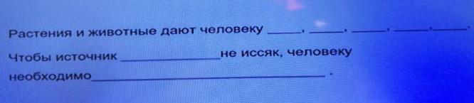 растения и животные дают человеку пищу, шкуры животных и лекарства.