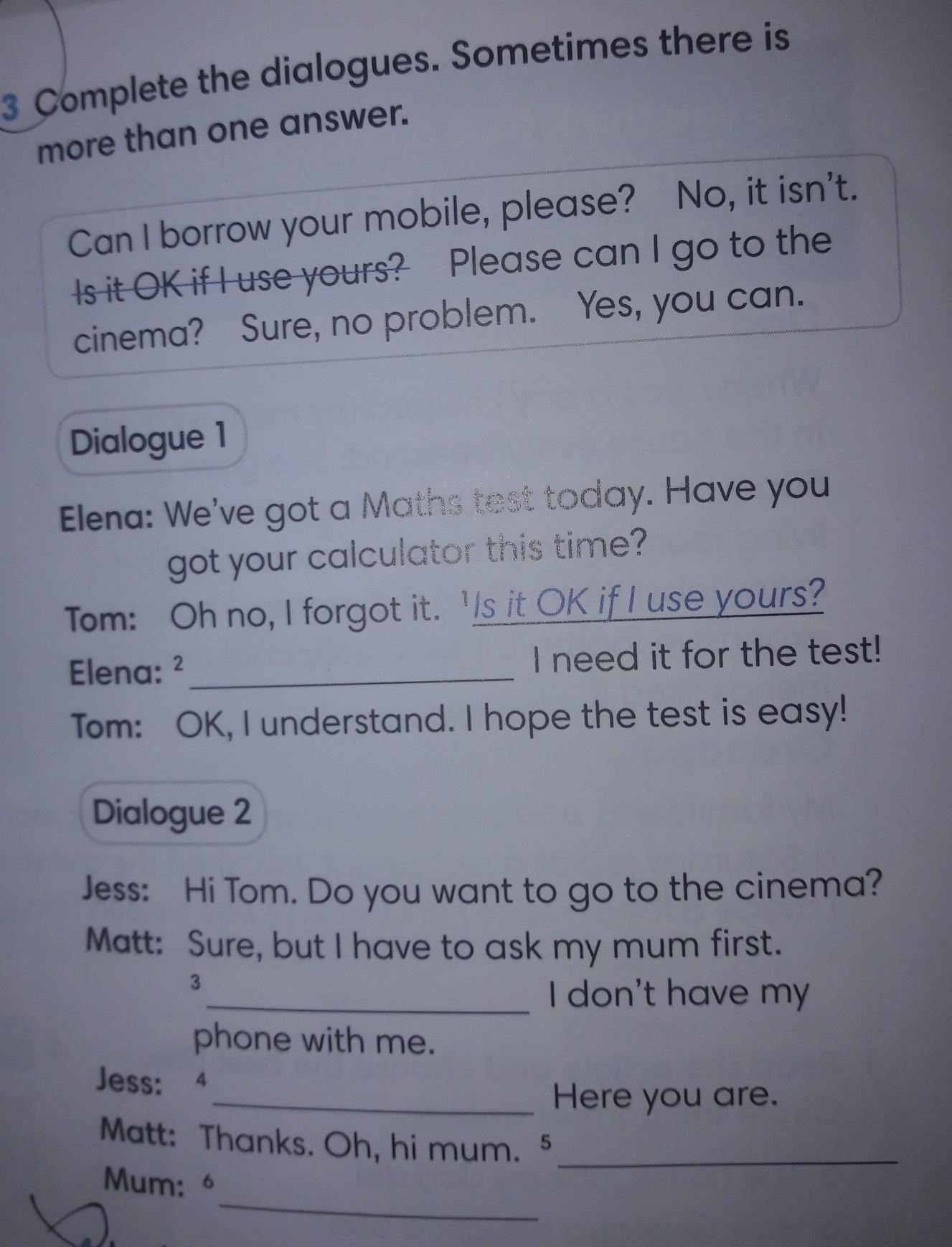 Ответ:1)Can I borrow ...2)No, it isn’t 3)Sure no problem 4)Please can I go to the...5) Yes, you can