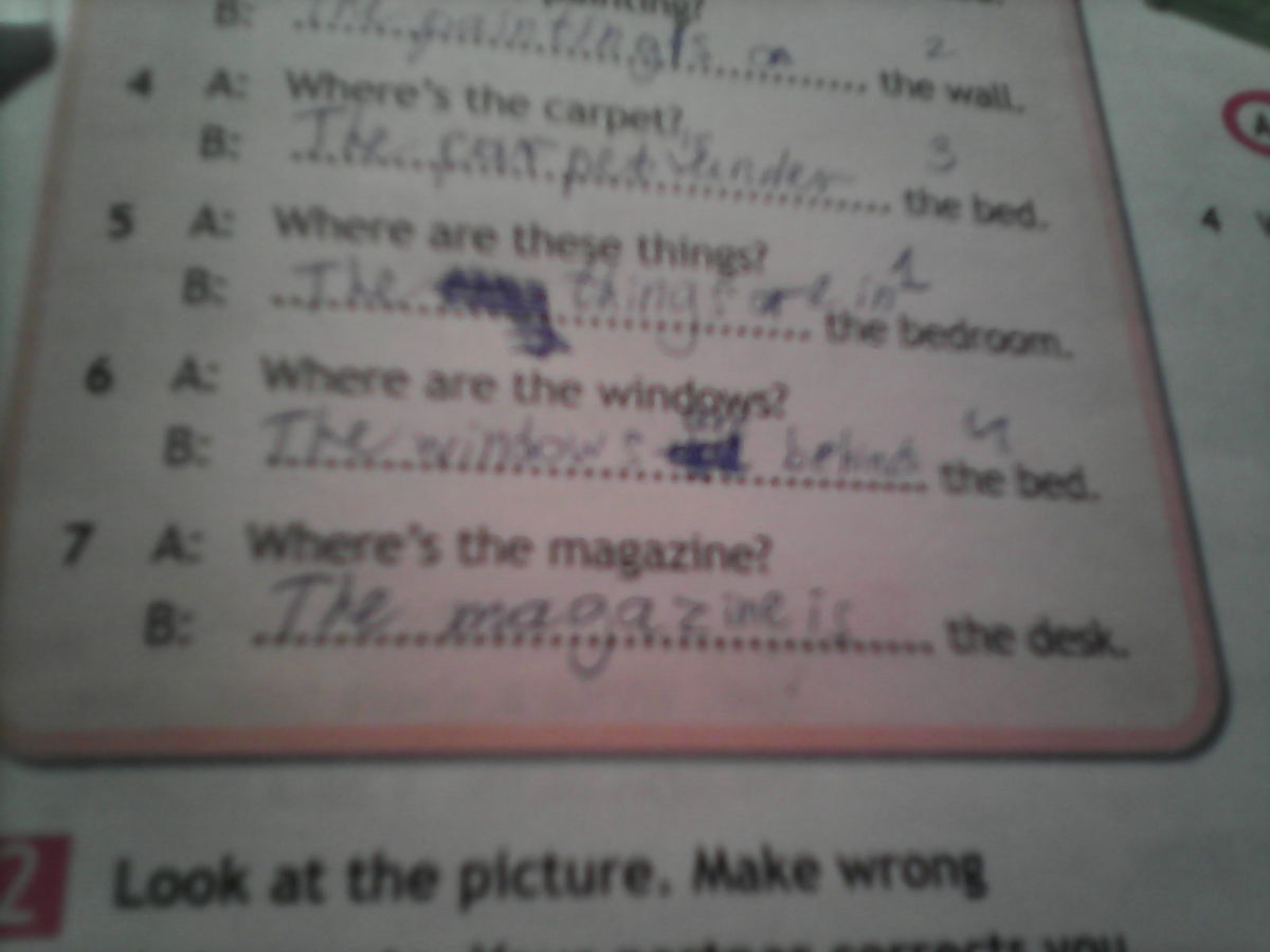надо вставить предлоги места: in, on, under, behind, next to, in front of. Что в 7. к