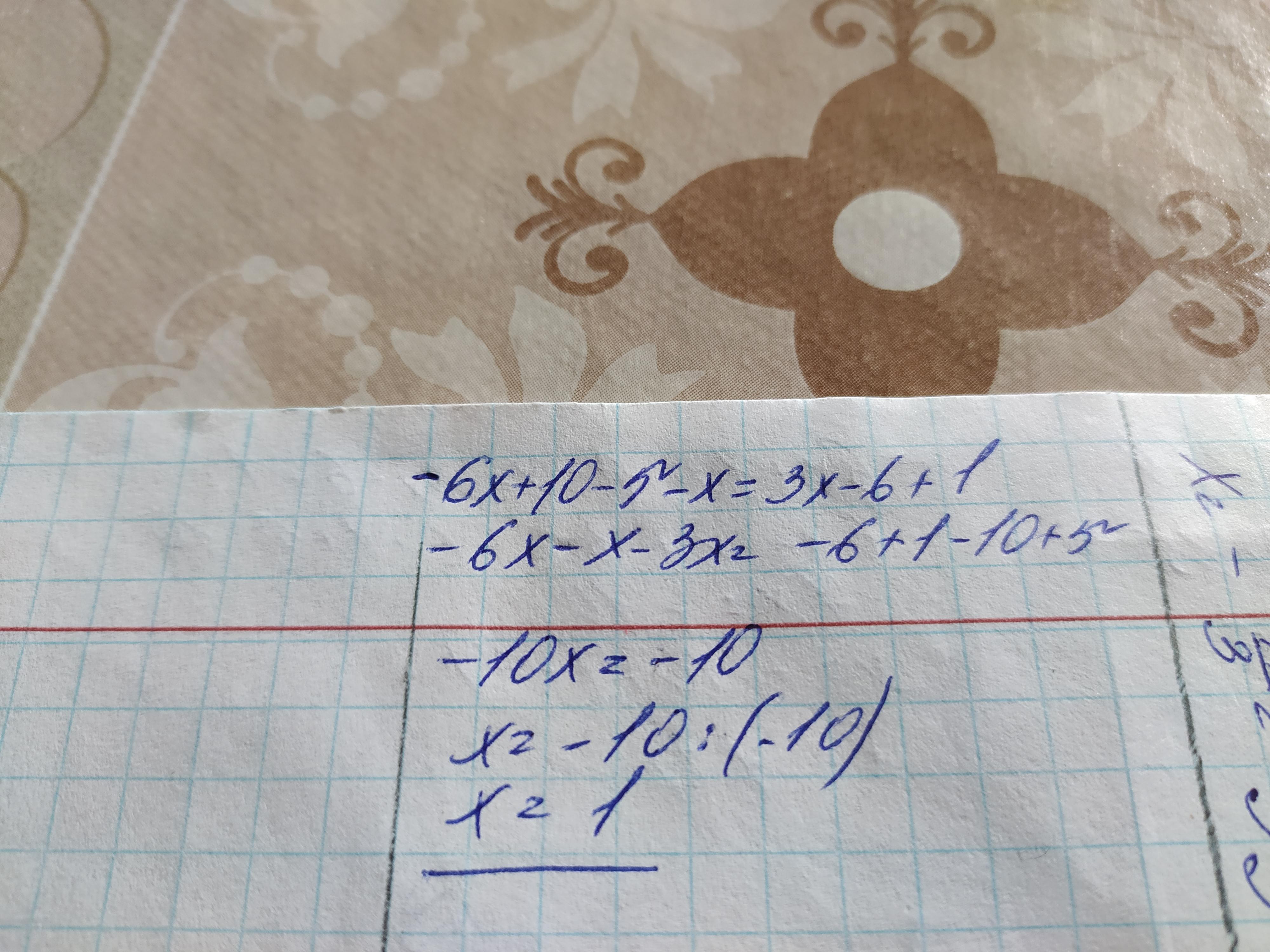 В вашем ответе ошибка,перенося 3х ,Вы не поменяли знаки. То есть,должно быть не -6х-х+3х=-6+1+5-10, а -6-х-3х=-6+1+5-10