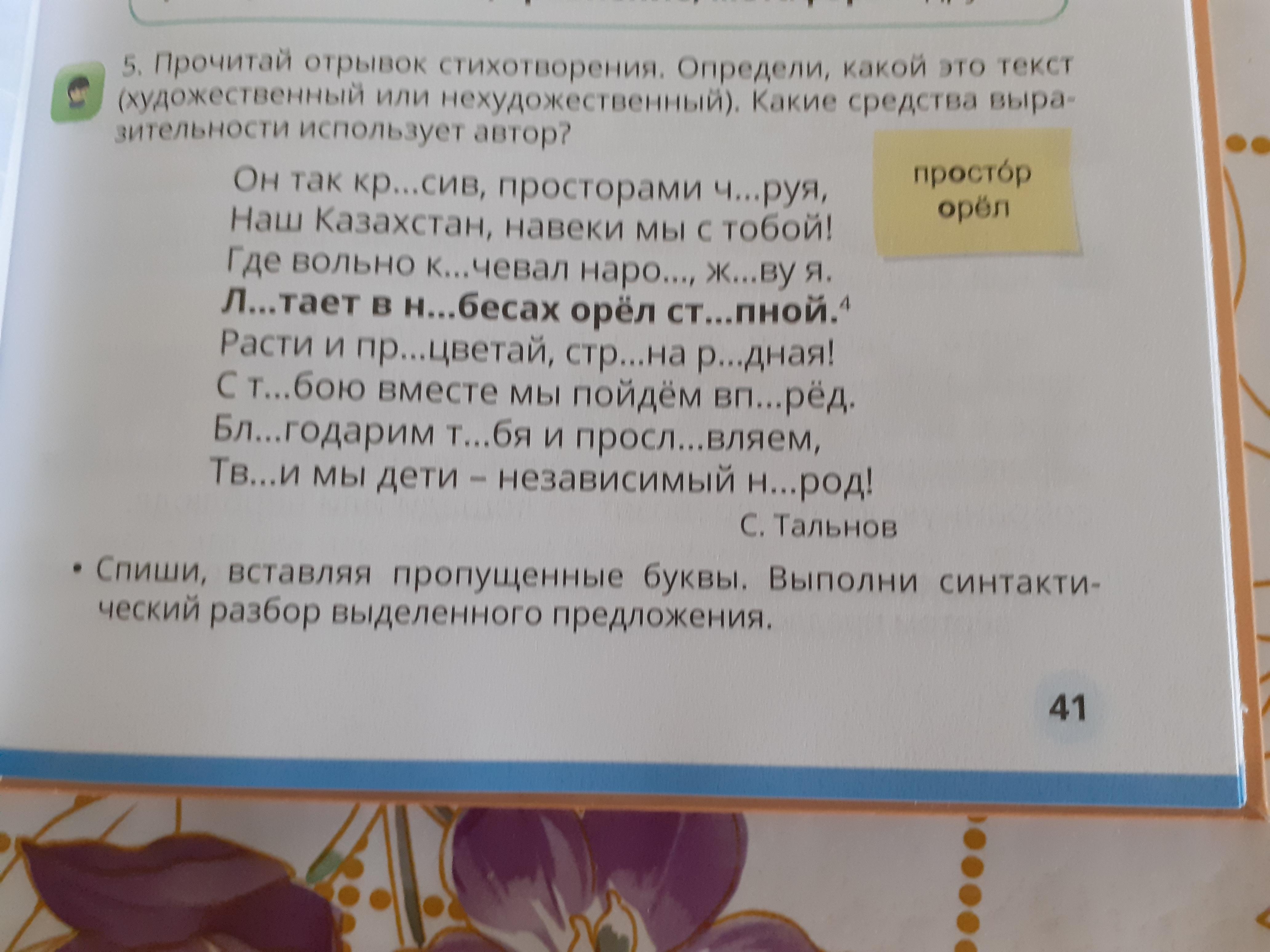 Летает сказуемое , орёл подлежащее, в небесах обстоятельство, степной определение.
