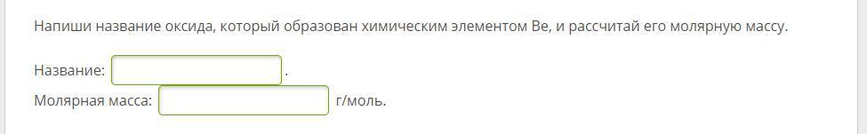 Напиши название оксида, который образован химическим элементом Be, и рассчитай его молярную массу.