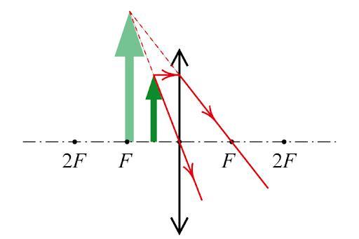 Чтобы получить мнимое изображение в собирающей линзе, необходимо поместить предмет ...