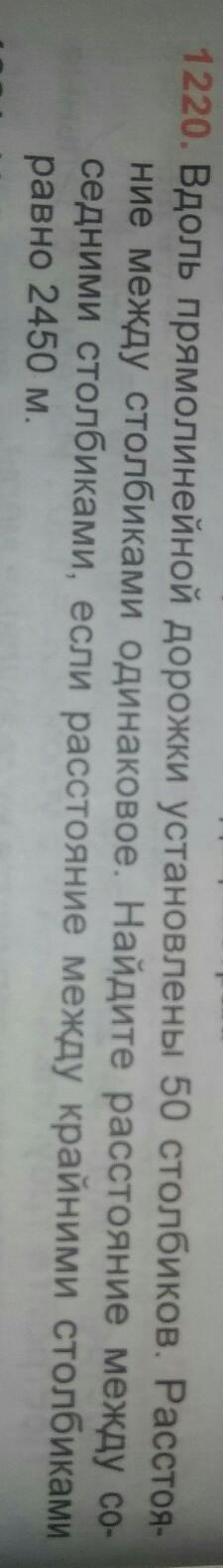 1220. Вдоль прямолинейной дорожки установлены 50 столбиков. Расстоя-