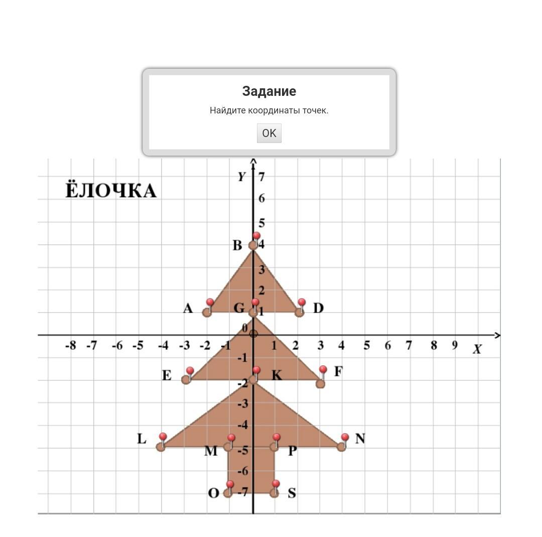 B(0;4) ; A(-2;1) ; D(2;1) ; G(0;1) ; E(-3;-2) ; K(0;-2) ; F(3;-2) ; L(-4;-5) ; M(-1;-5) ; P(1;-5) ; N(4;-5) ; O(-1;-7) ; S(1;-7)