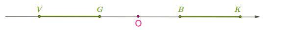 Определи числа, между которыми проведён отрезок VG, симметричный отрезку BK относительно точки O.