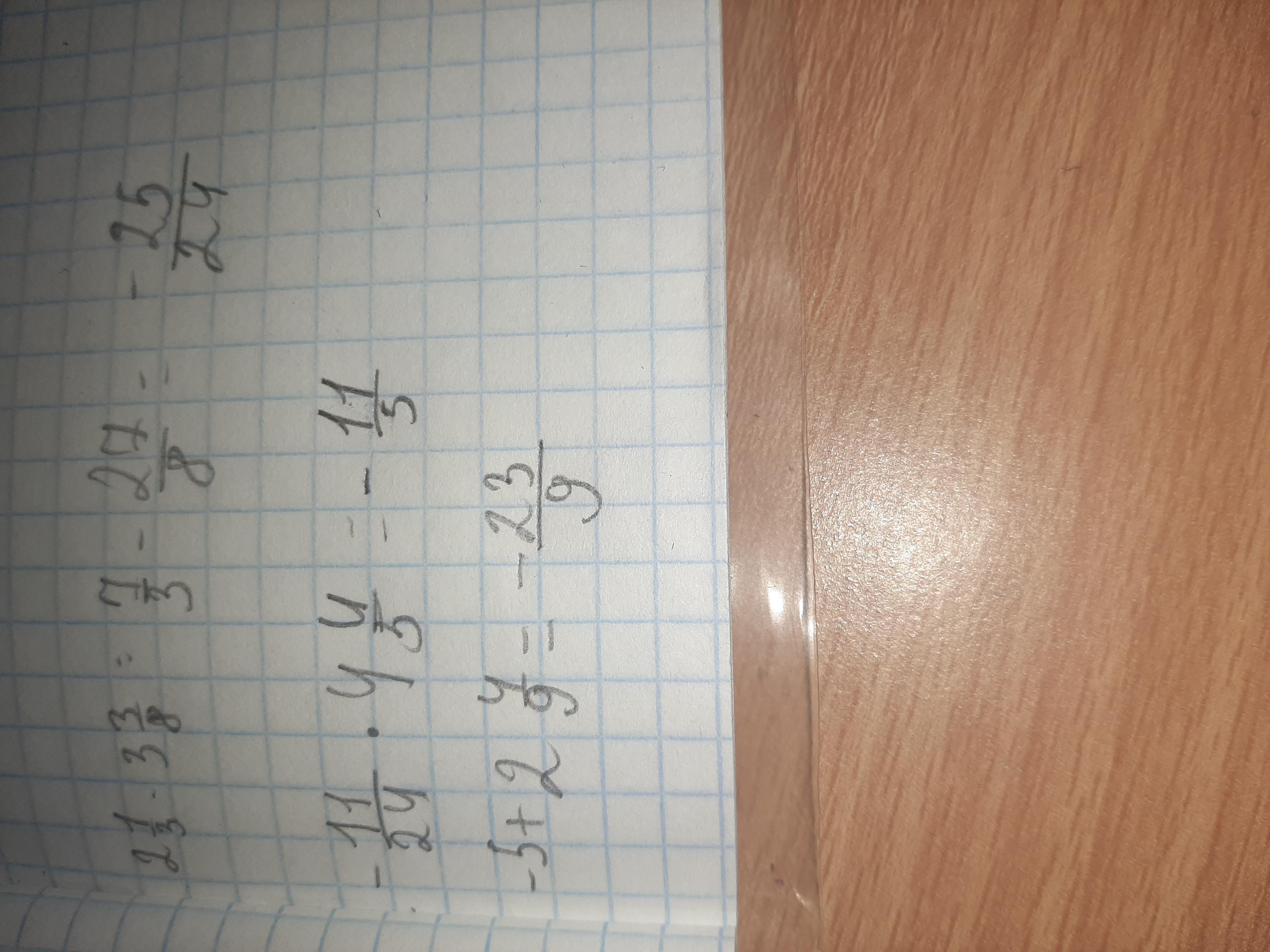 1) 2 1/3-3 3/8 = - 11/24 2)-11/24*4 4/5 = - 5 3)-5+2 4/9=-2 5/9